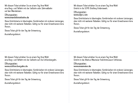 Zusätzliche Tickets können Sie ganz bequem an den jeweiligen Destinationen dazukaufen.