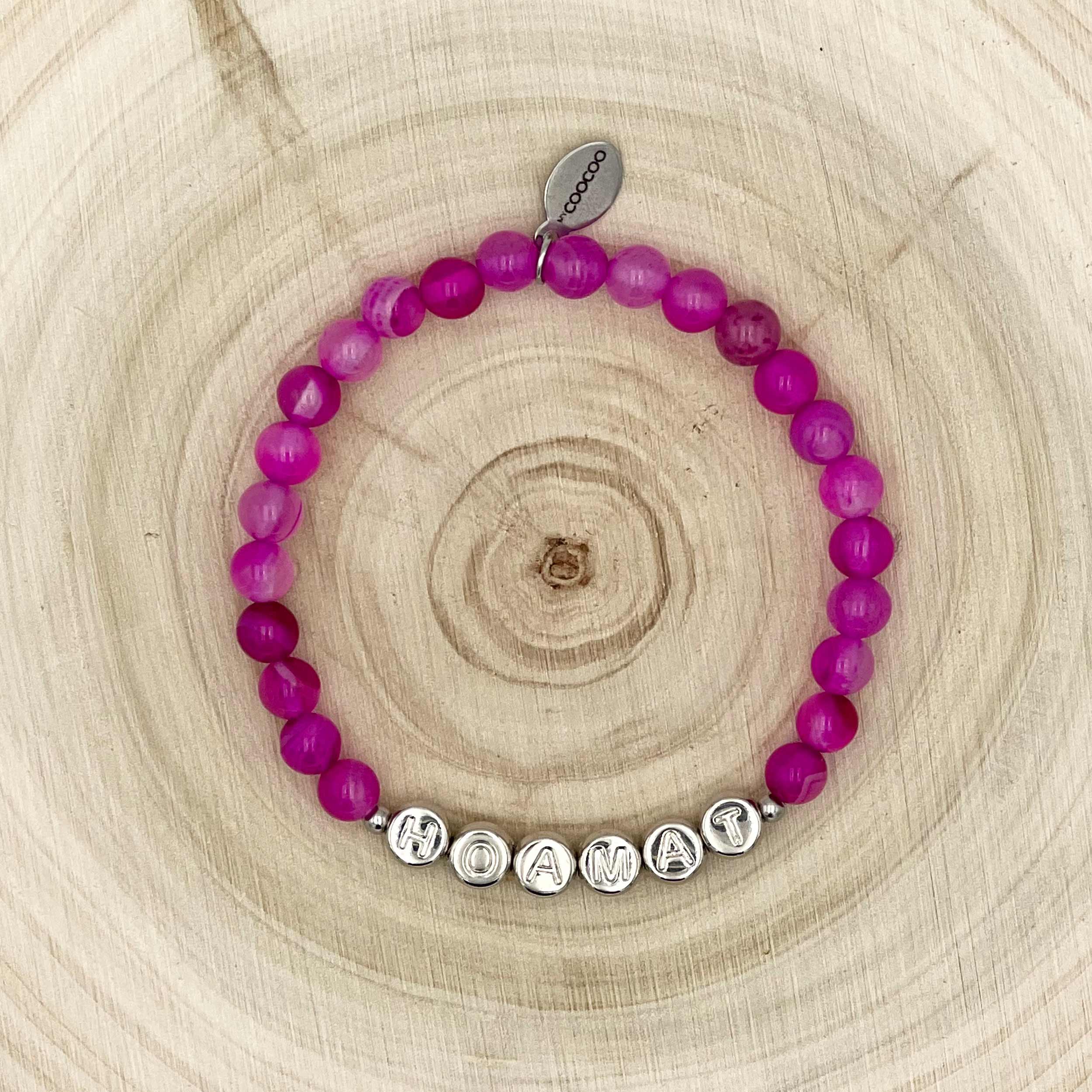 Dieses wunderschöne Homatbandl aus magentafarbenen Achat-Perlen mit dem Wort “HOAMAT” ist der Inbegriff von Stil und Persönlichkeit. Trage es, um deine Verbundenheit zu deiner Heimat auszudrücken und deinen Look aufzuwerten.