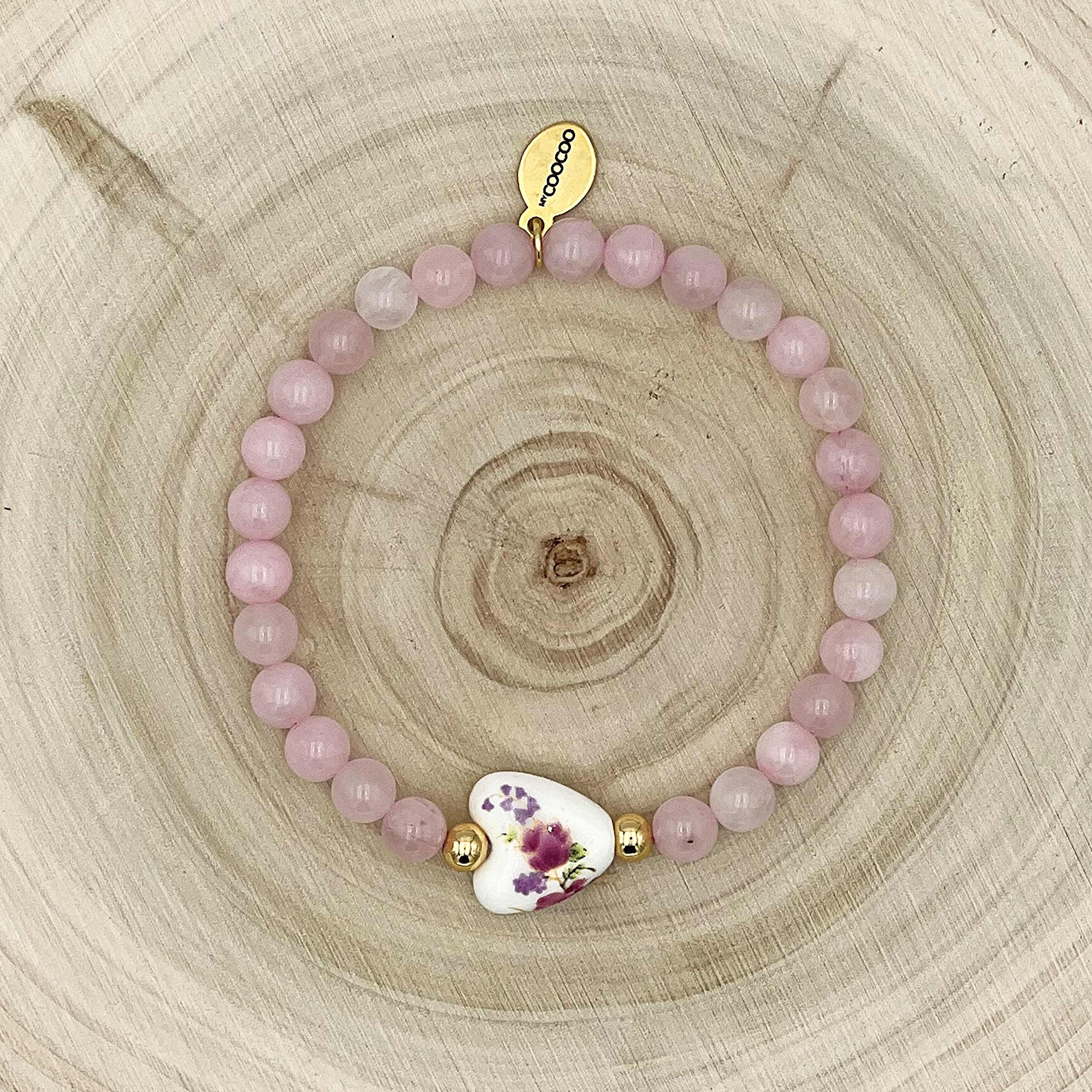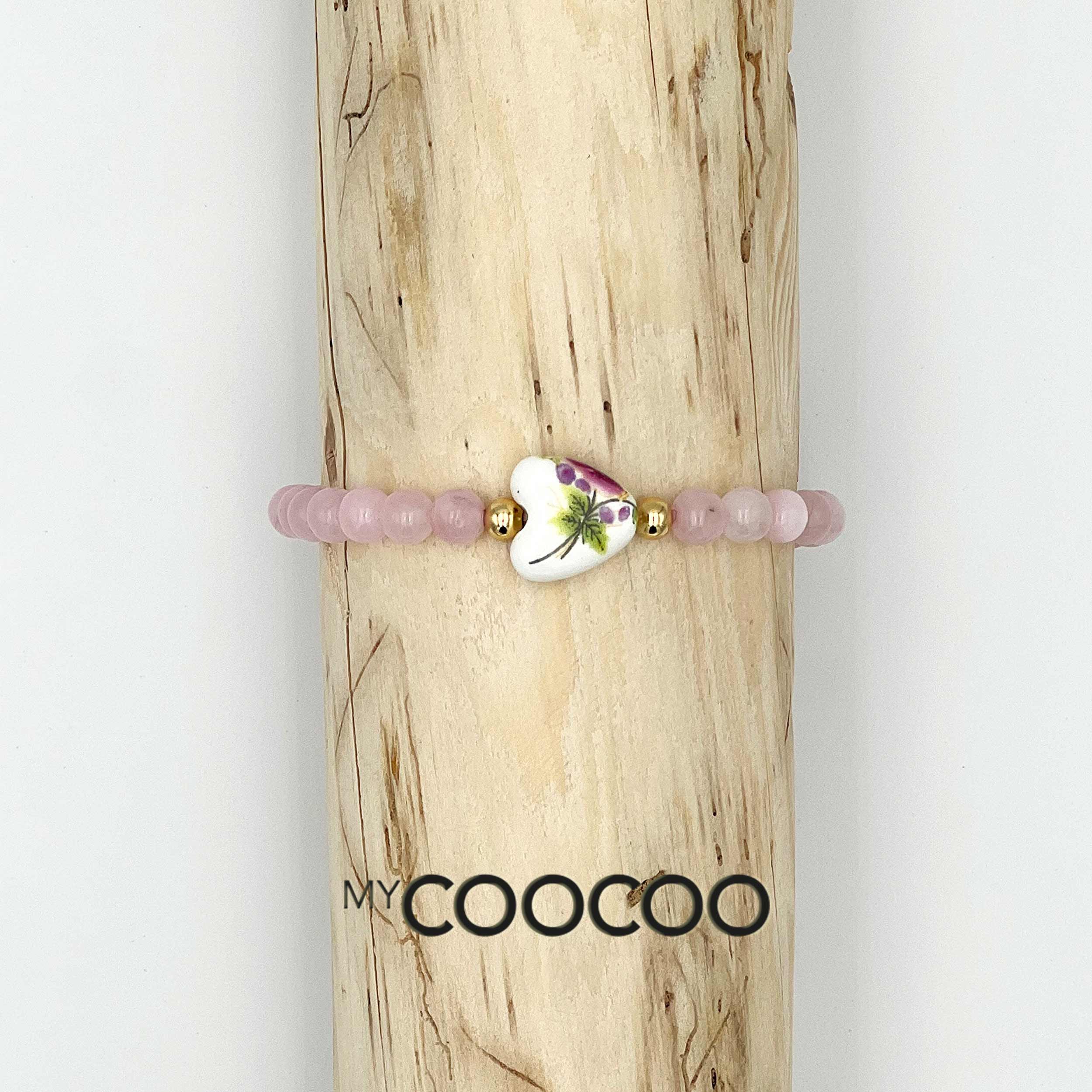 Trage dieses zauberhafte Hoamatbandl mit sanften Rosenquarzperlen und einem zarten Porzellanherz. Dein moderner Begleiter, der Liebe und Stil vereint, egal wo du unterwegs bist.