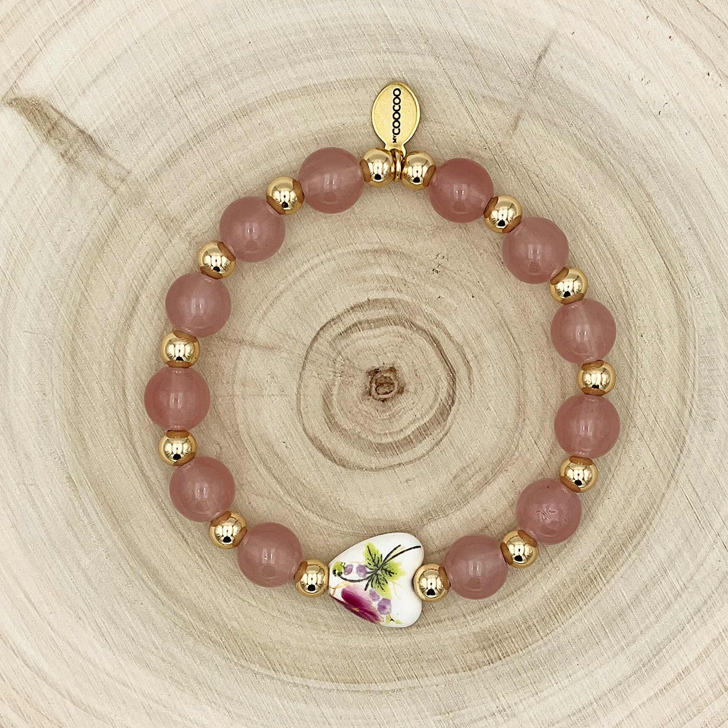 Gold und Altrose – eine Kombination die wir lieben! Die altrosa Glasperlen, funkelnde Goldperlen und das zarte Porzellanherzverschmelzen zu einem Hoamatbandl, das Emotionen weckt. Ein Begleiter, der deine Persönlichkeit strahlen lässt